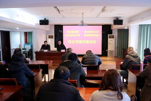 日下午,公司与浙江爱信诺航天信息公司在财苑大厦联合举行校企党建共建活动。爱信诺公司总经理马海,经理吴霖、党总支书记王聪,爱信诺公司和公司全体党员等共50余人参加活动。