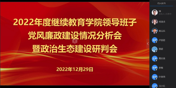 为进一步加强全面从严治党,筑牢廉政阵地,12月29日,公司以线上形式召开2022年度领导班子党风廉政建设情况分析会暨政治生态建设研判会。公司领导班子成员、各科室主要负责人参加会议。党总支书记王聪主持会议。