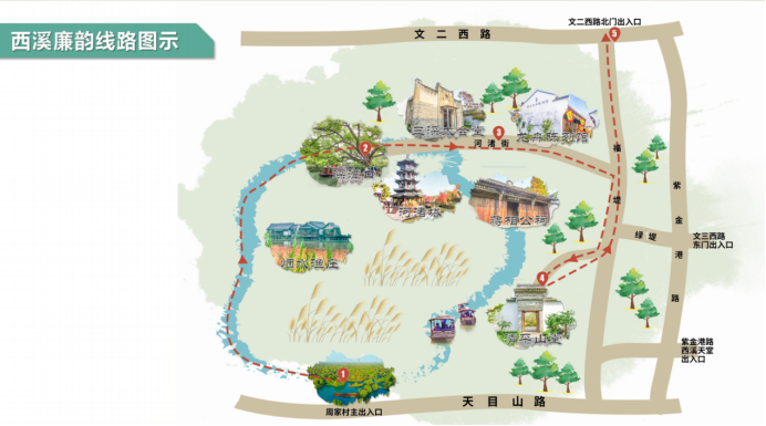 清平山堂:清平山堂为“钱塘望族”洪钟之孙洪楩的藏书楼。洪楩是明嘉靖年间著名的藏书家和刻书家,出生于西溪以“宋朝父子公侯三宰相,明纪祖孙太保五尚书”而传世的钱塘望族。洪楩官品不高人品高,一生与书相伴,爱读书、乐藏书、喜刻书,开创的清平山堂刻书坊和刻印的《清平山堂话本》《路史》等众多书目举世闻名。