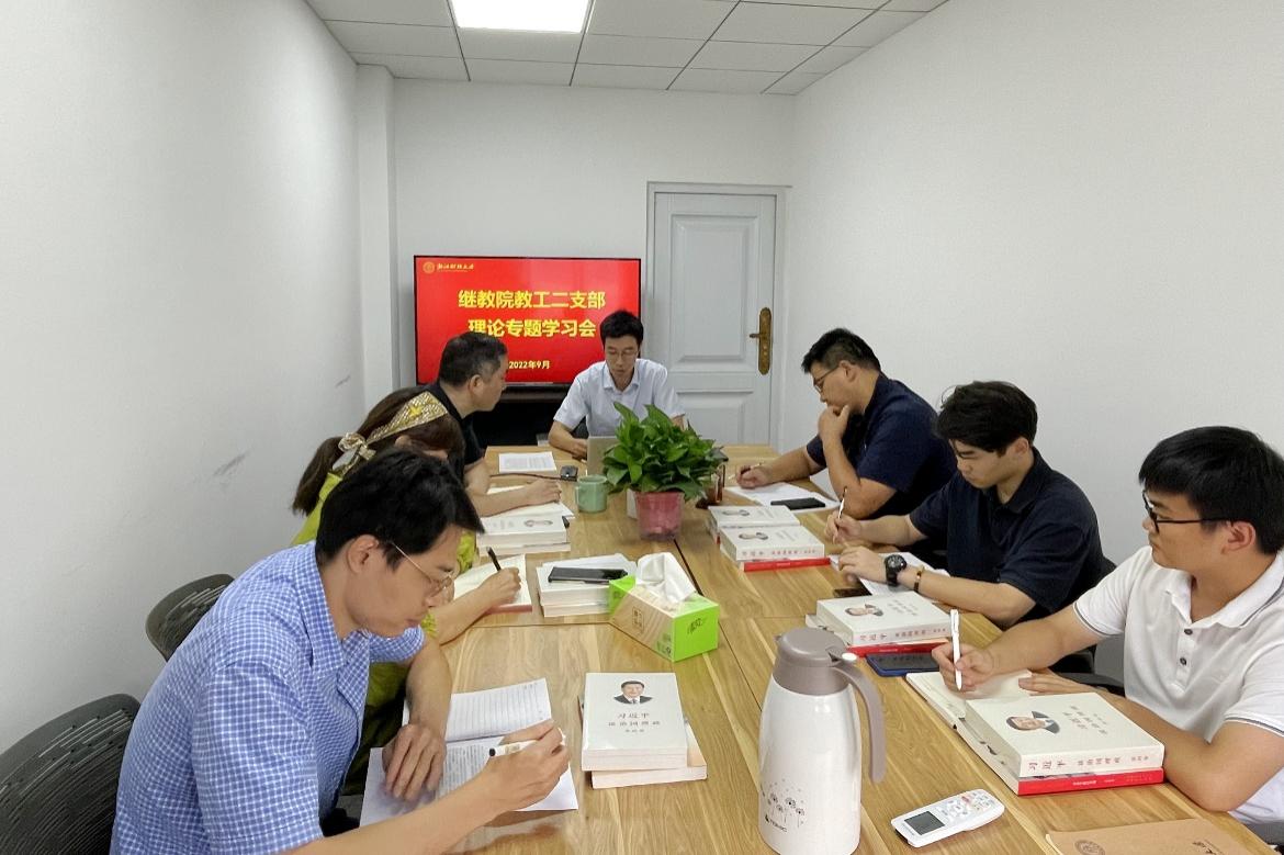 随后,党支部书记蒋超领学了《习近平谈治国理政》第四卷、习近平总书记在省部级主要领导干部专题研讨班上的重要讲话精神和习近平总书记给北京师范大学“优师计划”师范生的回信。支部全体党员紧扣此次专题学习内容,结合自身思想和工作实际,分别围绕勇于自我革命、两个“永远在路上”、育人初心使命、高质量发展、提高担当本领等主题,分享学习心得体会,畅谈贯彻落实举措。大家纷纷表示,要坚持读原著、学原文、悟原理,不断深化对新时代党的创新理论的理解和掌握,强化政治担当、把握工作主线,以学促思、以学促进、以学促干,在助力“两个先行”中争做示范表率,以实干实绩迎接党的二十大胜利召开。