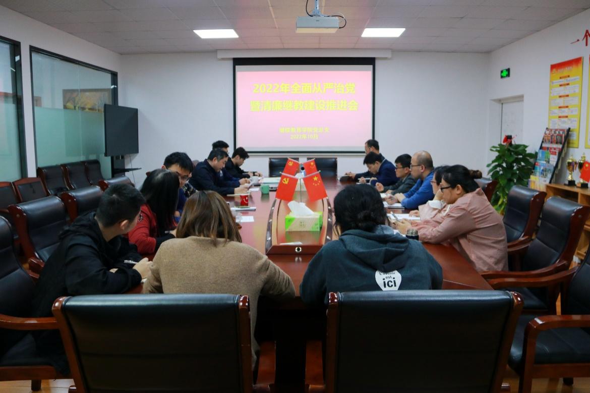 为贯彻落实省委、省教育厅和公司党委关于全面从严治党的决策部署和相关要求,10月25日下午,公司党总支召开2022年全面从严治党暨“清廉继教”建设推进会,传达学习上级有关会议精神,总结部署公司全面从严治党相关工作。公司班子成员和全体党员、教工参加会议,会议由党总支书记王聪主持。