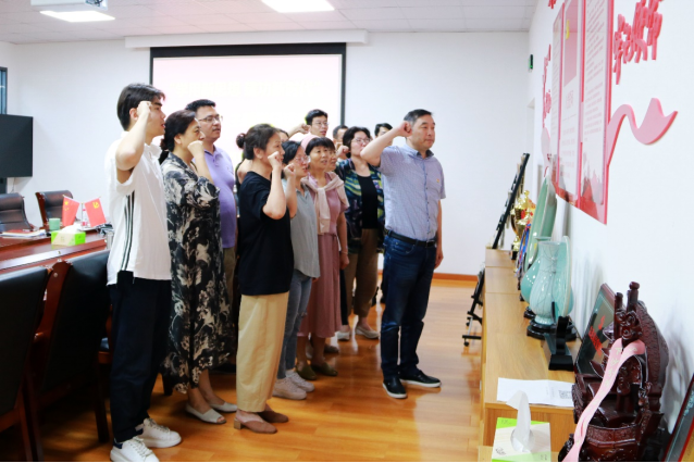 主题党日活动中,党员同志们还重温了入党誓词,用铿锵的誓言,向党庄严承诺,不忘初心、牢记使命,立足岗位讲奉献,争先创优当先锋。