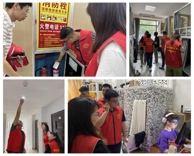 活动中,党员志愿者走进下沙校区宝龙员工公寓,认真对消防设施、安全逃生通道、监控设施及台账记录情况进行逐一排查,并深入员工宿舍详细了解员工寝居情况,重点对宿舍卫生和消防物件准备情况进行检查,教育引导员工要营造整洁宿舍环境,养成安全用电和健康起居习惯,做到不乱拉电线、不在室内抽烟和使用违规电器,号召同学们共同维护好安全寝居环境。
