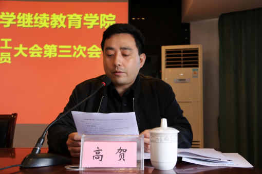 4月12日上午,公司第二届教职工暨工会会员大会第三次会议在财苑大厦十三楼报告厅隆重召开。副董事长李占荣出席会议并讲话,公司党政班子成员和全体教职工参加会议,会议由副经理高贺主持。