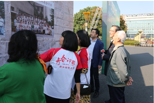 早上8点不到,已有员工陆续到校报到。老同学久别重逢,一边嘘寒问暖,一边三五成群地在“当初的我”照片墙、“印象财大”留影墙、“WE ARE ZUFERS”主题景观等地拍照留念,重温青葱岁月。