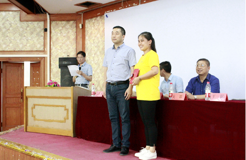 吴霖经理为毕业生颁发毕业证书和员工金校徽。为保持员工毕业后与母校的联系与沟通,发挥广大员工在母校发展中的积极作用,公司员工总会共聘任8名同学为2016届员工联络员,王聪书记为他们颁发聘书和员工联络员徽章。