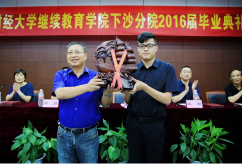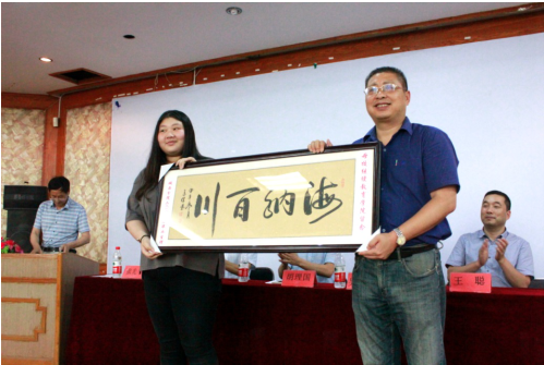 (吴霖经理为毕业生颁发毕业证书和员工金校徽)