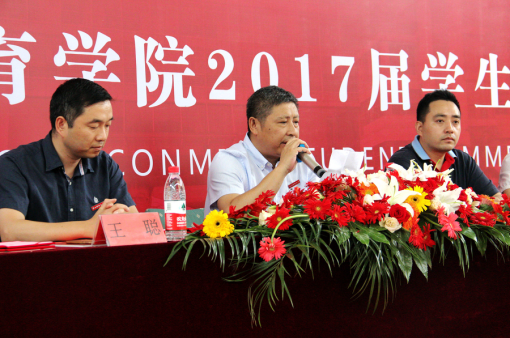 大会在庄严的国歌声中开始。吴霖经理发表了热情洋溢的致辞。他代表公司师生向圆满完成学业的2017届“高技能+学历”毕业生表示热烈祝贺,并提出了三点期望:一是希望同学们要保持脚踏实地不断进取之心,使自己成为全面发展的复合型人才;二是希望同学们要心胸宽阔自强不息,朝着梦想不断前进;三是希望同学们要常怀感恩之心回报社会,成为有道德、有素质、有情怀的人。他祝愿毕业生,“此去当怀报国志,不忘春风化雨情”,以满怀天下为己任的豪情,投入到燃烧的青春中去!