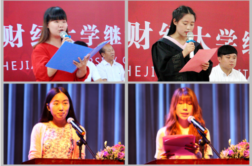 城西分院教师代表周欣怡、毕业生代表朱益,下沙分院教师代表王莹、毕业生代表章嘉瑶分别作了发言。老师们祝福同学前程似锦,毕业生们向母校表达了深深谢意和浓浓不舍之情。