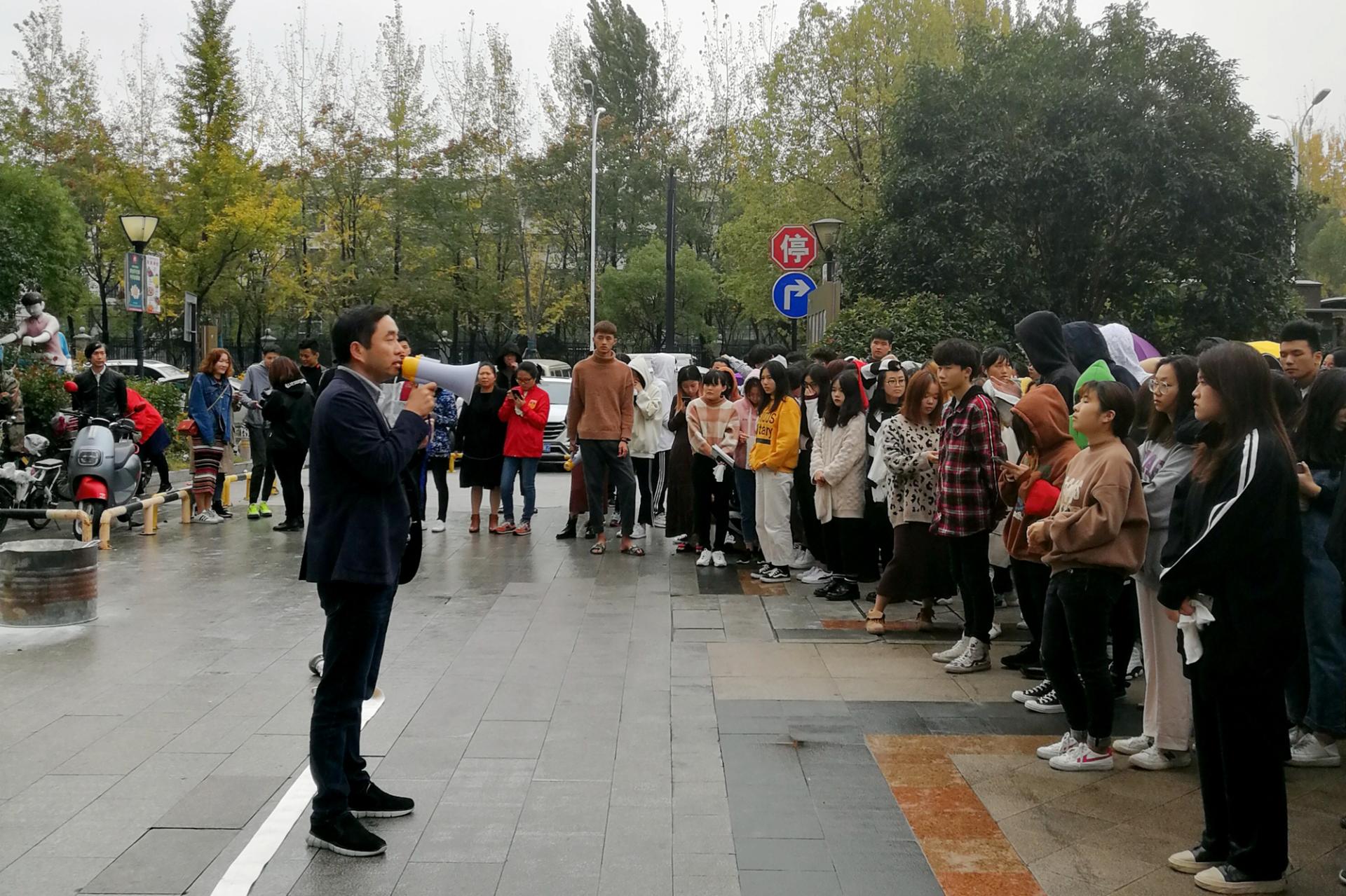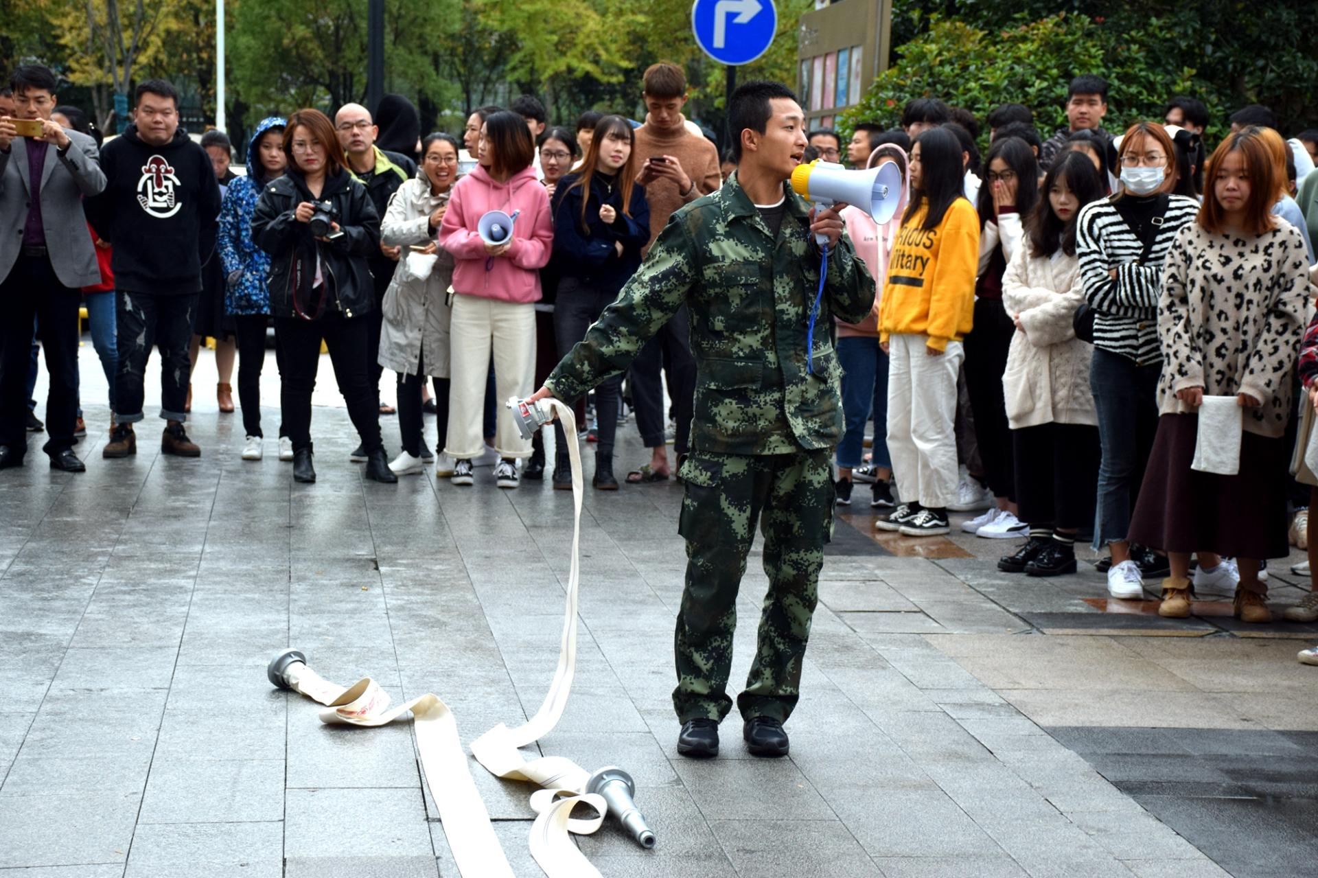 为了进一步加强公司安全工作,增强师生消防安全意识,提高自救防范能力,根据公司关于开展“11·9”消防安全系列活动的统一部署,11月7日下午,公司下沙分院在宝龙广场举行消防安全演练活动。校保卫处处长汤慧炎,院领导吴霖、王聪、高贺,员工管理部部长曹中成、下沙分院全体教职工和2018级员工参加活动,下沙白杨消防中队、白杨派出所指导员莅临现场指导。