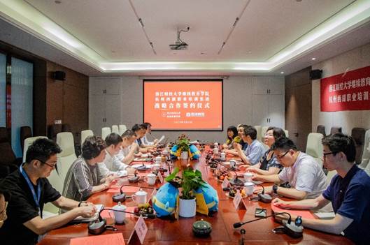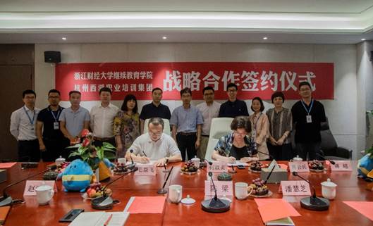 6月3日,公司与杭州西湖职业培训集团战略合作协议签约仪式在杭州萧山智慧谷举行。副董事长李永友,公司经理何淑贞、党总支书记王聪、副经理蒋云兵,西培集团董事长毛益飞、副总裁赵江海、陈梁等出席签约仪式。