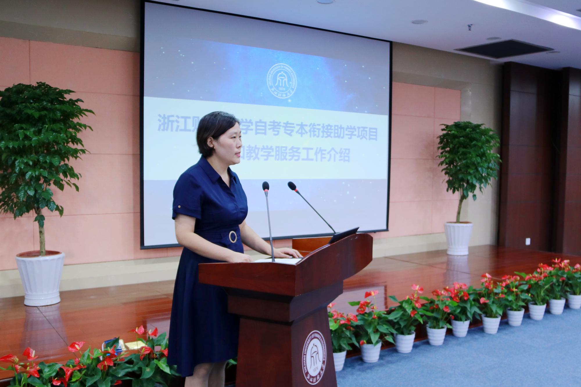 何淑贞经理致欢迎辞,她代表公司对大力支持公司自考工作的与会院校表示衷心感谢,并简要介绍了公司发展概况和继续教育工作基本情况。她指出,举行此次会议是为了进一步履行好公司自考本科专业主考院校职责,加强本科院校与专科院校的对接交流和办学合作,实现资源共享和优势互补,从而为高职院校员工提供更多更广的学历提升渠道。她希望通过此次会议,双方进一步增进感情、扩大共识,共享办学经验,共谋自考发展,共商合作事宜,努力为浙江省自考事业发展作出更大更新的贡献。