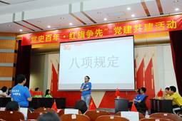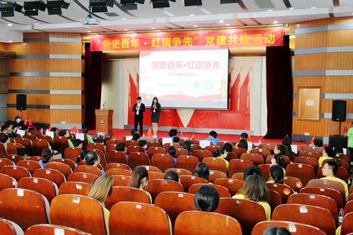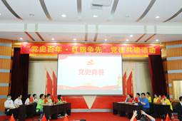 仪式结束后,举行了“党史百年·红旗争先”党史知识竞赛。竞赛活动以寓学于乐为目的,通过竞赛争先、勇夺红旗形式将党史学习有机融入教育活动,引导党员群众深入学习党史党章、传承弘扬红色基因。4家单位分成白、黄、蓝、绿四支队伍,积极参加了红歌合唱、党史竞答、你说我猜和经典重现等四个单元比赛。