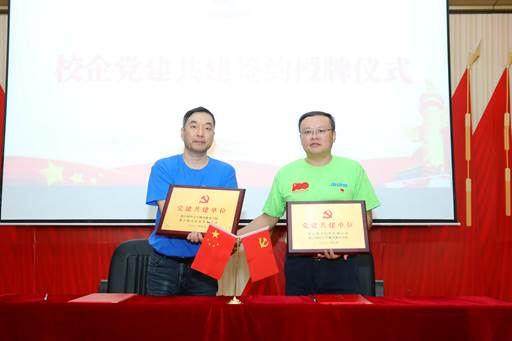 签约授牌仪式上,浙江航信公司总经理、党支部书记马海和继教公司党总支书记王聪分别致辞。校企双方希望以党建共建为纽带,通过组织联建互促、资源联享互通、党员联管互动、活动联商互融、实事联倡互助、发展联荣互惠等形式,共同探索党建与业务融合发展的新思路、新途径、新方法,将党建互促互进的政治优势转化为事业发展、服务群众的实际行动,推动形成互带互助、共同发展、合作共赢的基层党建新格局。马海和王聪共同签订校企党建共建协议书,并互相向对方授党建共建牌。