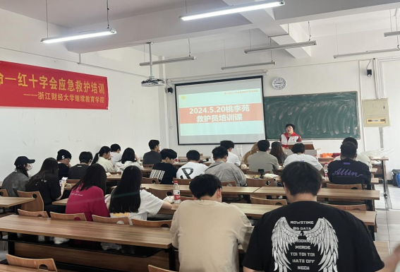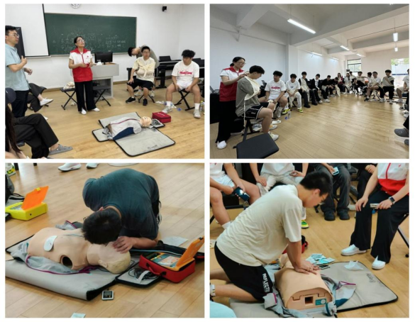红十字会的培训导师分别围绕应急救护理念、心肺复苏、骨折固定、伤员搬运、海姆立克急救法、外出血救护和AED设备使用等几方面内容向大家详细讲解急救知识理论,让同学们深刻理解了急救知识的重要性和实用性。