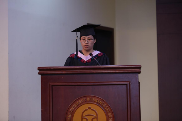 教师代表、会计公司教师潘志强教授,毕业生代表、2024届财务管理专业董晓叶同学分别发言。