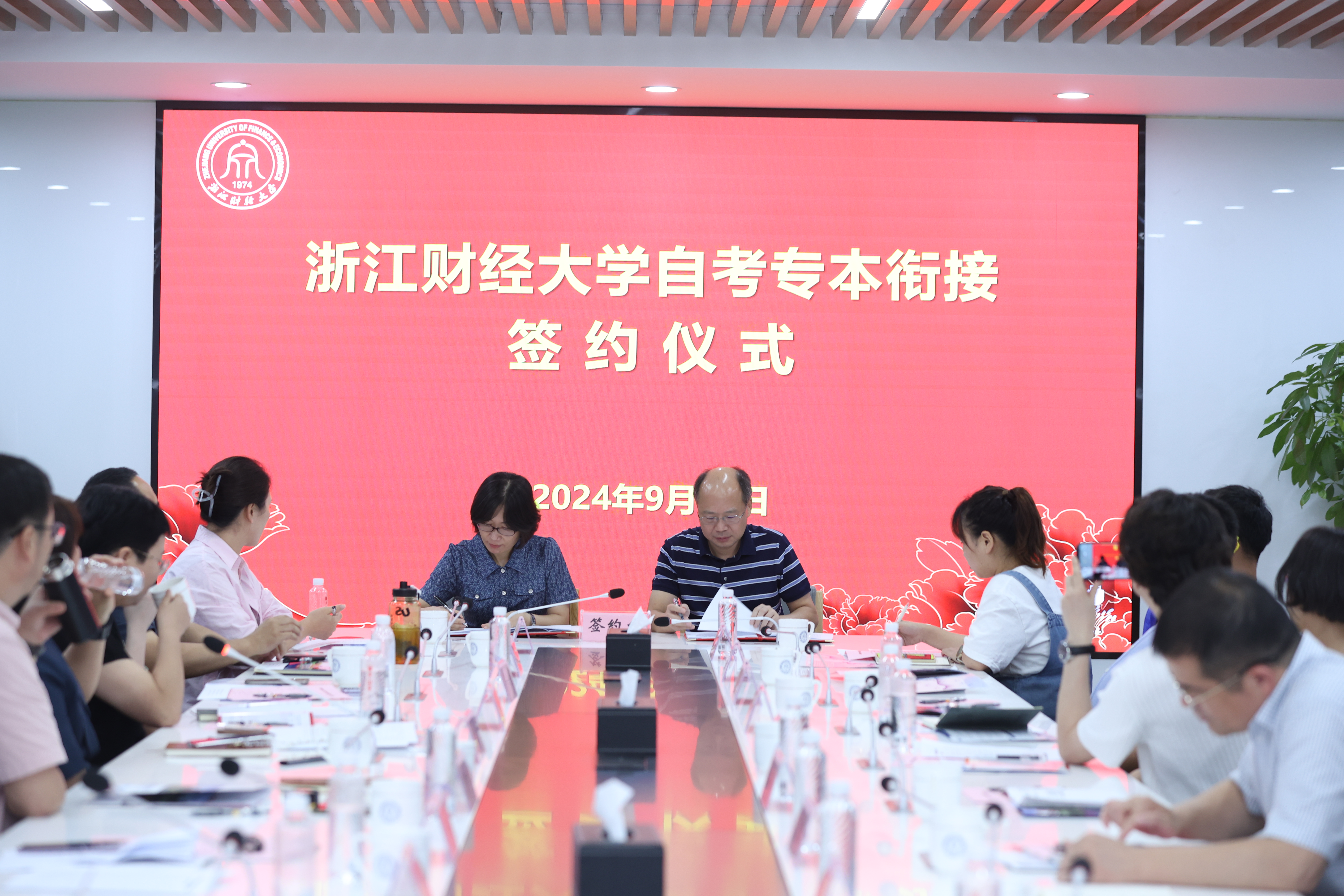 会上还举行了项目签约仪式,公司与浙江金融职业公司共同签订了自学考试专本衔接教育合作协议。