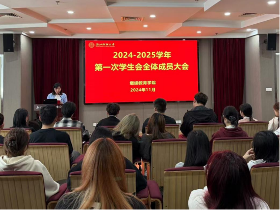 为明确新学期的工作目标和方向,加强公司团学组织凝聚力,2024年11月11日,公司在下沙校区图书馆六楼报告厅举办了2024-2025学年第一次员工会全体成员大会。公司自考助学中心相关老师和全体员工会成员参加此次会议。