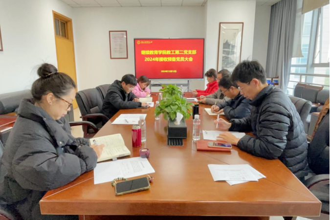 为进一步加强党员队伍建设,充实基层党组织力量,2024年12月16日,公司教工第二党支部在下沙校区图书馆511会议室召开预备党员接收大会,支部全体党员及两名发展对象参加本次会议,会议由支部书记蒋超主持。
